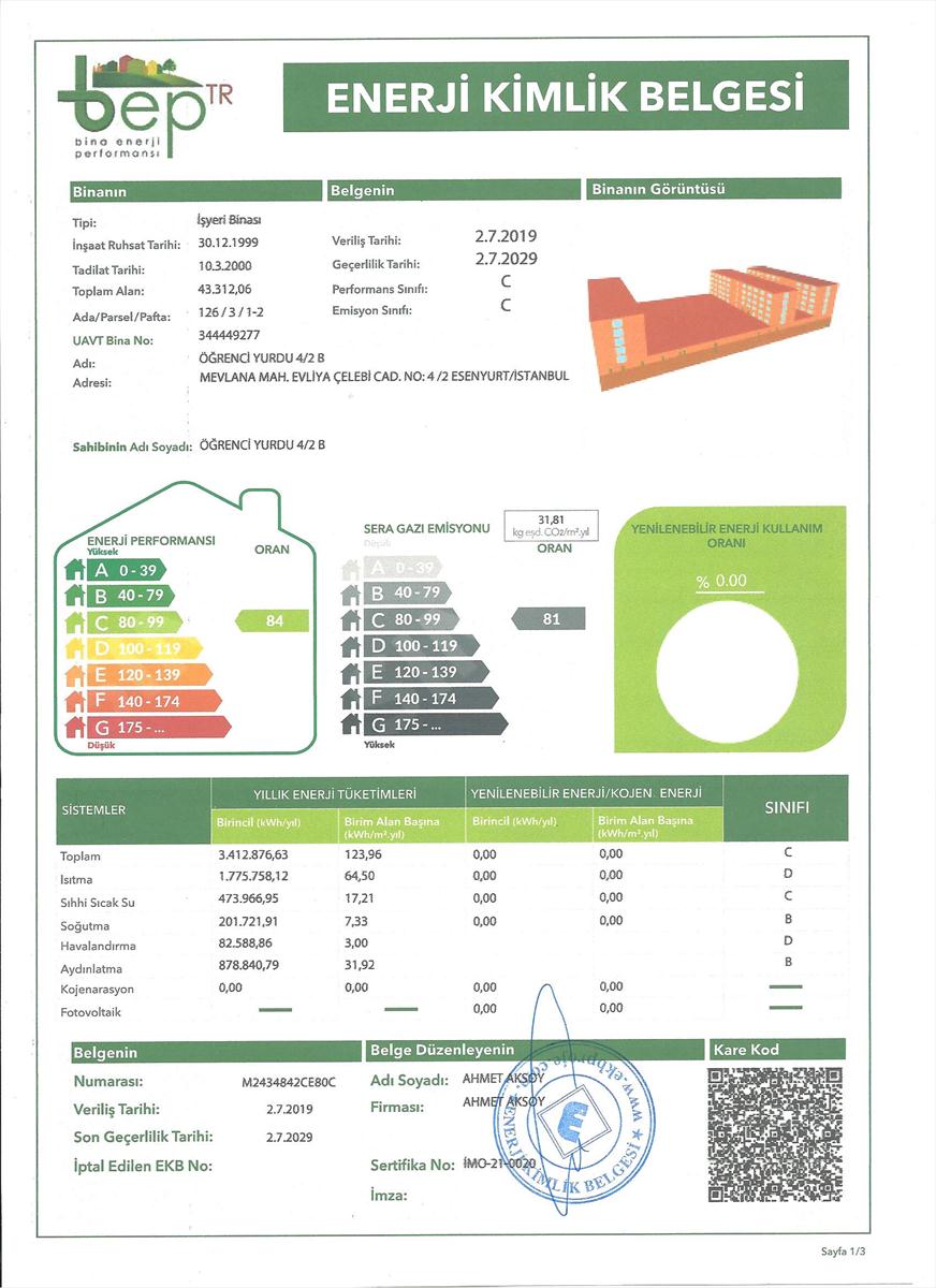 B BLOK (EKB) ENERJİ KİMLİK BELGESİ 4/2 B